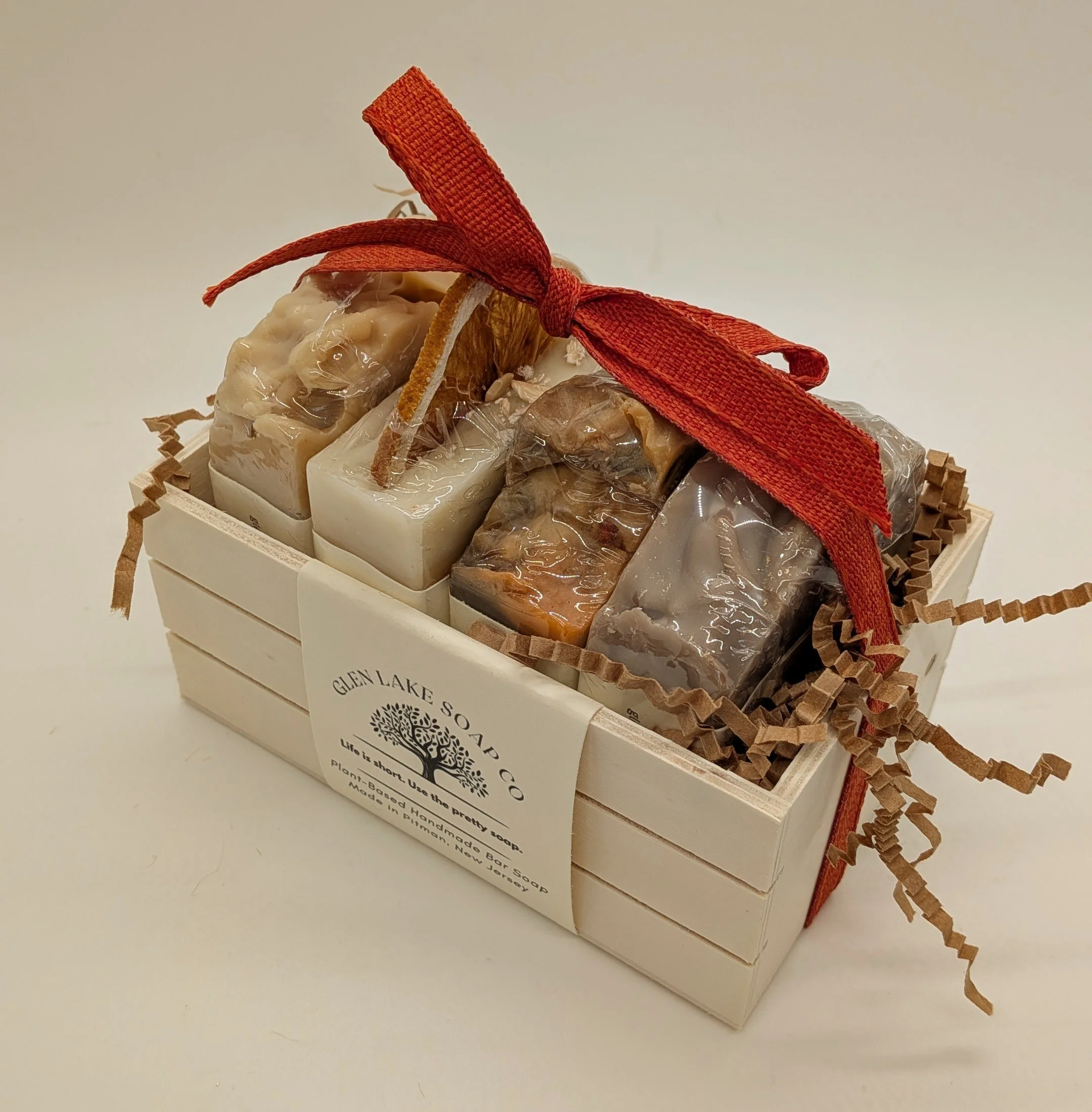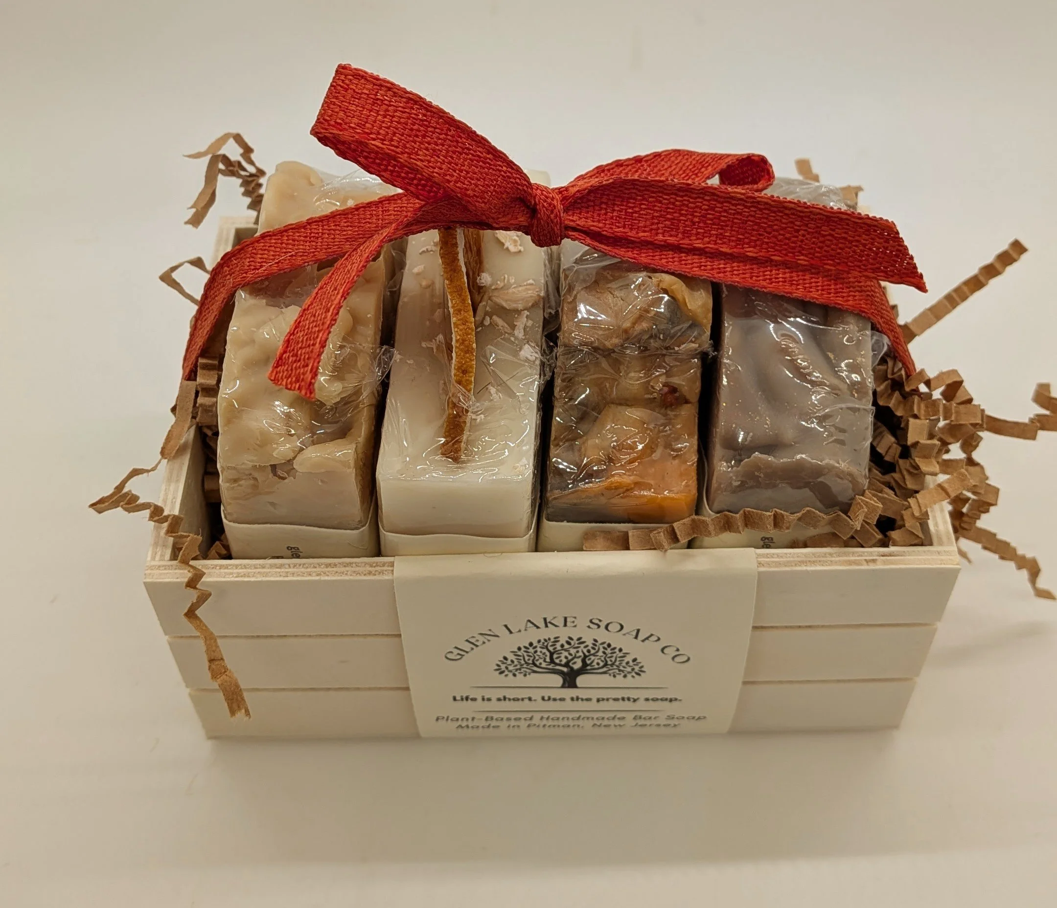 This 4 bar set of handmade artisan soaps comes in a reusable wood crate.